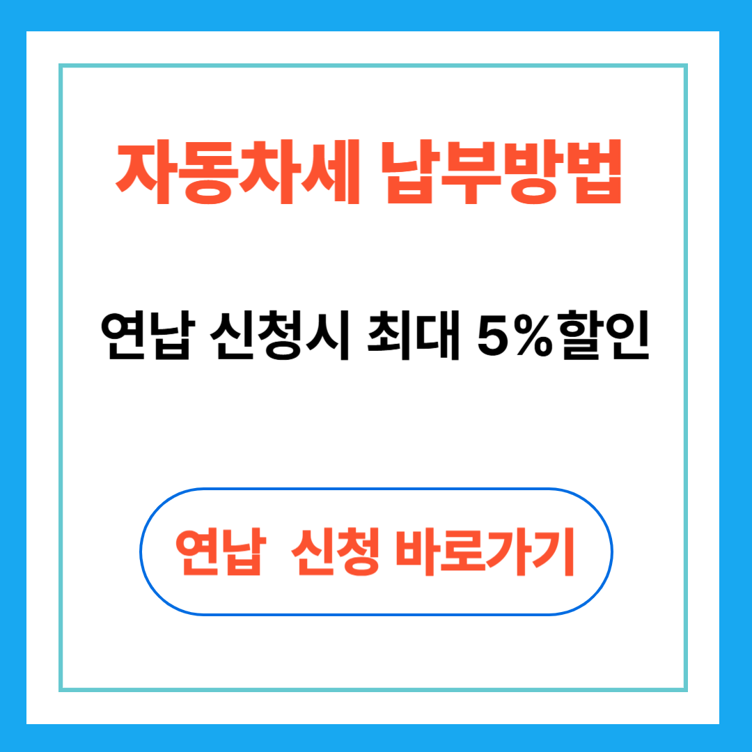 “고지서 없이도 스마트폰·인터넷·ATM에서 간편하게, 연납 신청 시 최대 5% 할인! 내 차 자동차세, 지금 바로 조회·납부하고 절세하세요.”